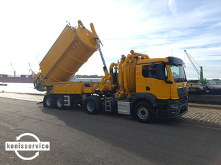 Deze Trekker/oplegger Combi opbouw is eveneens voorzien van een weegsysteem, alsook van een zuighaspel achteraan op het deksel. Tot slot is deze Combi ook volledig uitgerust met ledverlichting rondom rond, dit bevordert de veiligheid van de operators tijdens hun werk.