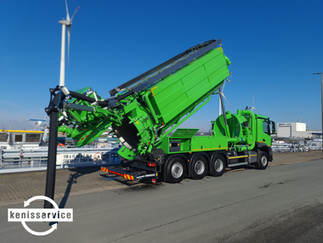 Dit indrukwekkende voertuig, opgebouwd op een Mercedes-Benz Arocs Tridem, is uitgerust met een krachtige VacuStar WR 4100 vacuümpomp van CVS. Maar dat is nog niet alles! We hebben ook twee hogedrukpompen gemonteerd: een grote URACA-hogedrukpomp voor het reinigen van riolen en een handige Pratissoli-hogedrukpomp voor het fijnere werk.